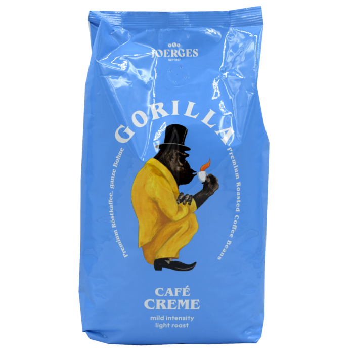 Gorilla Café Crema is een uitzonderlijke en fijne koffie. De koffiebonen zijn nobel, sterk en zeer aromatisch. De koffiebonen zijn medium tot mild van smaak. Dompel jezelf onder in de wereld van Café Creme, een koffie die perfect de balans vindt tussen een rijk aroma en een milde branding. Heerlijke koffie voor een koffie volautomaat of natuurlijk een andere zetwijze. De koffiebonen zijn licht gebrand, hebben weinig zuren en hebben een intensiteit van 4/10. Gorilla café crema is dus kortom een koffie, met een aangenaam zacht profiel en lichte zuurgraad.